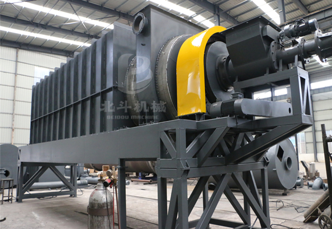 3、采用臥式雙層滾筒組合結(jié)構(gòu),連續(xù)炭化生產(chǎn),大大縮短了生產(chǎn)周期,提高了木炭生產(chǎn)效率。